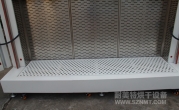 外形材質(zhì)采用2mm厚冷板折彎而成,表面高溫靜電噴塑(非普通油漆)耐腐蝕,防生銹,外形尺寸:寬2.6米,深0.85米,高1.3米,雙開門,配加強(qiáng)型鍍鉻方鋼門鎖,拉手,鍍鉻加強(qiáng)型合頁,烤箱頂箱開有6個∮250孔.